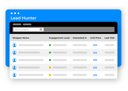 Automatically identify your most engaged website shoppers—even if they don't submit a lead form. Lead Hunter scores leads by tracking website shopper activity, allowing you to quickly prioritize and follow up with serious buyers.