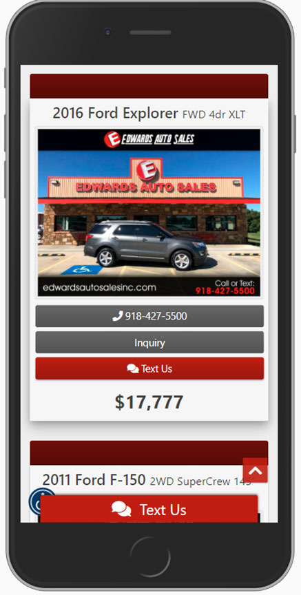 Add the power of texting to your website. The fact is consumers are much more likely to interact via text than any other method. Increase your leads and sales with the powerful new texting feature from Dealer Car Search.