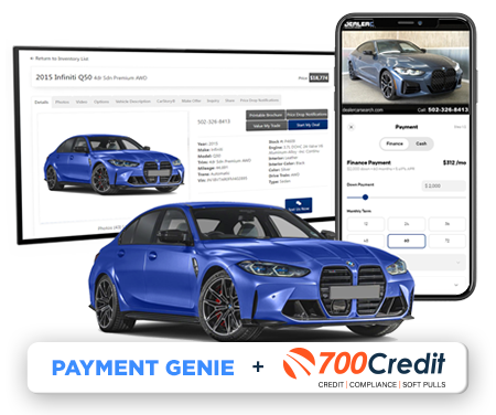 Unlike other payment tools, Dealer Car Search’s Payment Genie integration with 700Credit is designed to encourage car shoppers to explore accurate payment options without requiring extensive personal information. Shoppers receive instant prequalification for the vehicle of their choice.