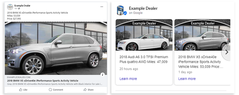 Supercharge your online presence with our cutting-edge Google & Facebook Auto Posting! Effortlessly expand your reach as each new vehicle added to your account is instantly showcased on your Google Business Page and Facebook Business Page. Our system ensures timely and strategic posts, spacing them out every 4 hours for maximum engagement.